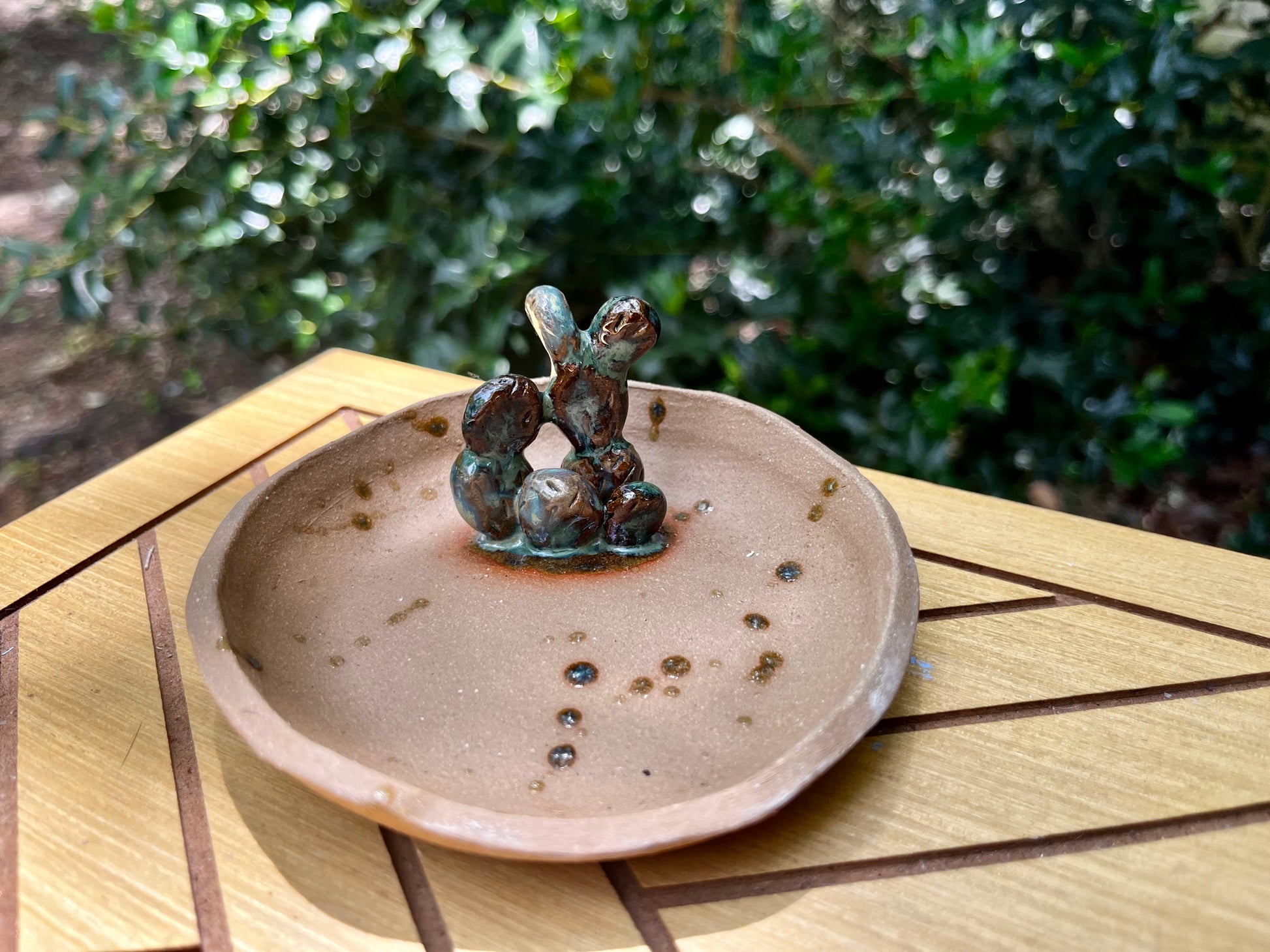 These trinket dishes are the perfect gift for your favorite prickly friend. Each tray is uniquely hand sculpted to represent the individuality of prickly pear cactus in the wild. The tray is a raw stoneware clay with two types of green glaze over the cactus and dripping onto the tray. Measuring 3.5-4" wide with a .5" lip.