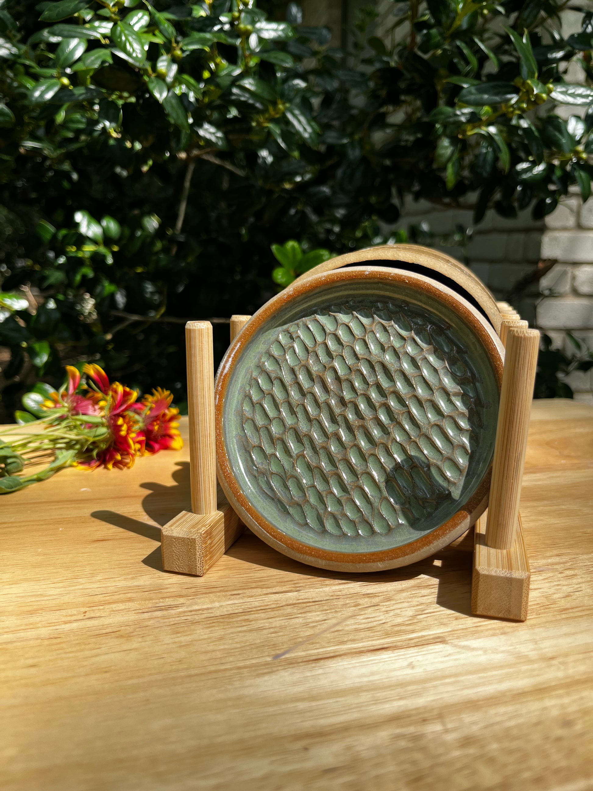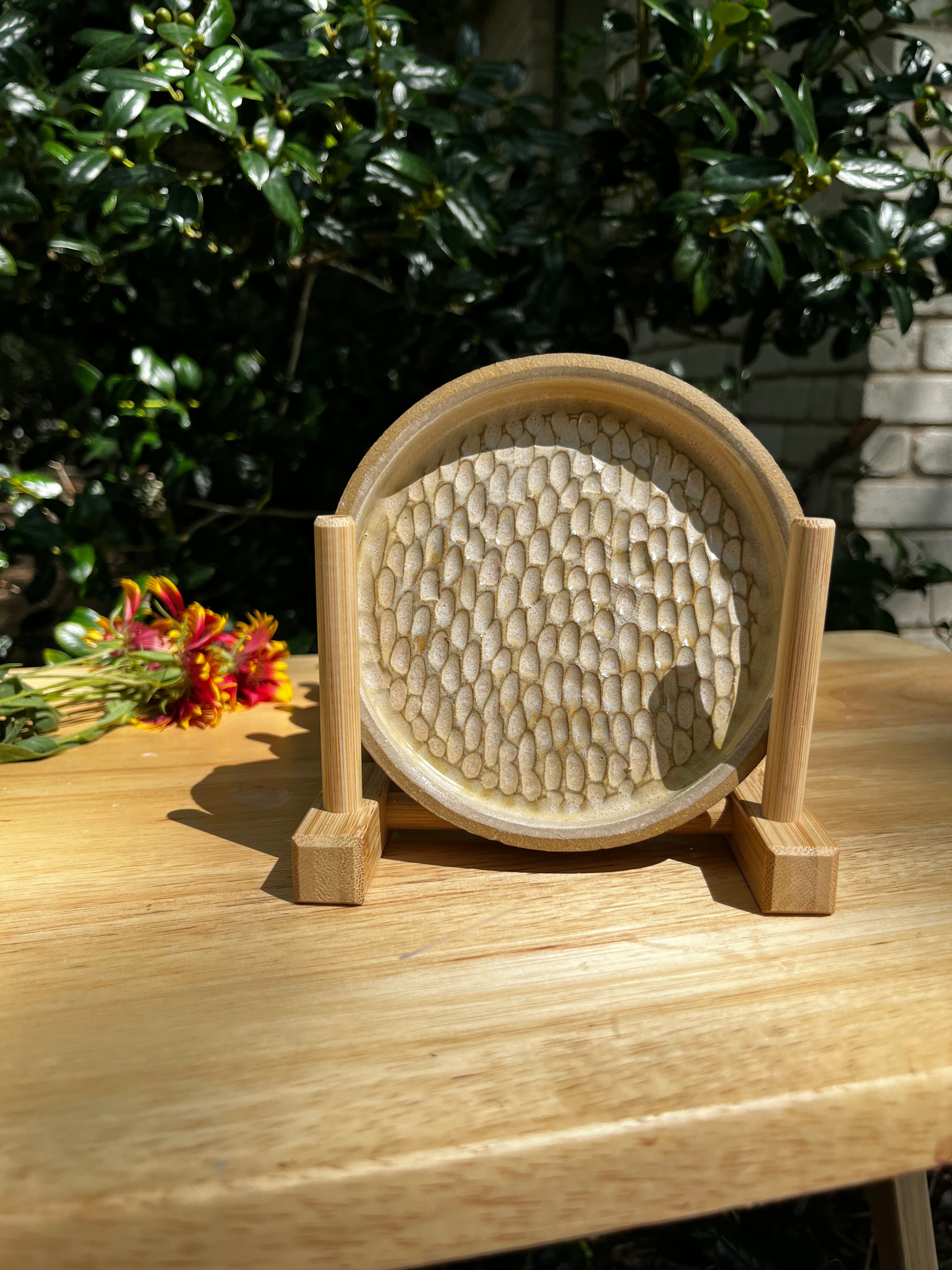 These delightful trays are the perfect size to fit on your grazing table, charcuterie board, or the small table in between you, your best friend and a crisp glass of wine. Grate garlic and make your own olive oil dipping sauce. Grate ginger for your tea, or tumeric for your curry. These trays have endless possibilities and come in four colors! Recycled clay, with lead free, non toxic and dishwasher safe glazes. sitting at 3.5-4" in diameter with a .5" lip. Hand thrown, hand carved, and fired to 2200*.